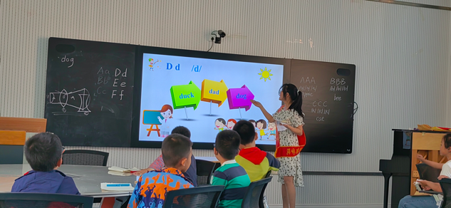 本节课的学习目标是字母D、E、F及相关单词的发音。课堂开始之初,两名志愿者带领同学们进行热身活动环节,通过简单英文字母歌拉进和小朋友的距离,小朋友们热情的呼应给予志愿者们信心与动力。随着课堂气氛逐渐升温,志愿者们随后组织同学们通过抢答方式复习上一周学过的英语单词发音,并让他们了解今天所讲的主要内容。接着,志愿者们根据PPT内容带领小朋友初步了解自然拼读、感悟发音规律。了解学习内容后,志愿者们引入紧张刺激的抢答环节,对回答相应的单词发音问题并答对的小组进行得分累积,最后结算给予不同奖励。激励了积极参与课堂的同学,也鼓舞了内向不爱说话的同学们。课堂接近尾声时,志愿者们邀请同学们分享自己收获,提出疑问,之后对小朋友疑问进行解答,本次课程圆满落下帷幕。下课后,志愿者们认真倾听了指导老师的意见,对课堂志愿服务进行了总结反思,为接下来的志愿服务做准备。