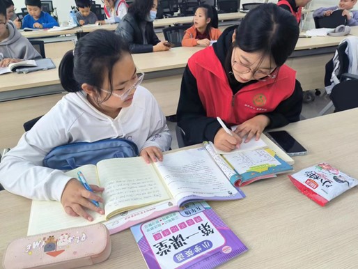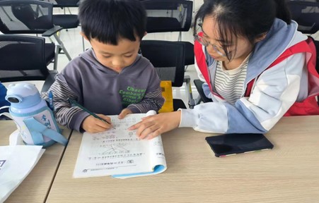 志愿者们帮助不同年龄段的孩子们完成英语、数学等科目的作业,进行一对一有效辅导,通过预习、练习、复习等步骤逐步开展英语学习,主要通过朗读单词、课文,纠正作业错误,指导作文写作等方式帮助孩子们提高英语成绩,针对不同孩子的学习习惯与学习方式提出建议,对于重点难点进行着重讲解,附带听写单词、翻译句子等进行拔高训练、巩固知识,帮助孩子们提高学习能力。