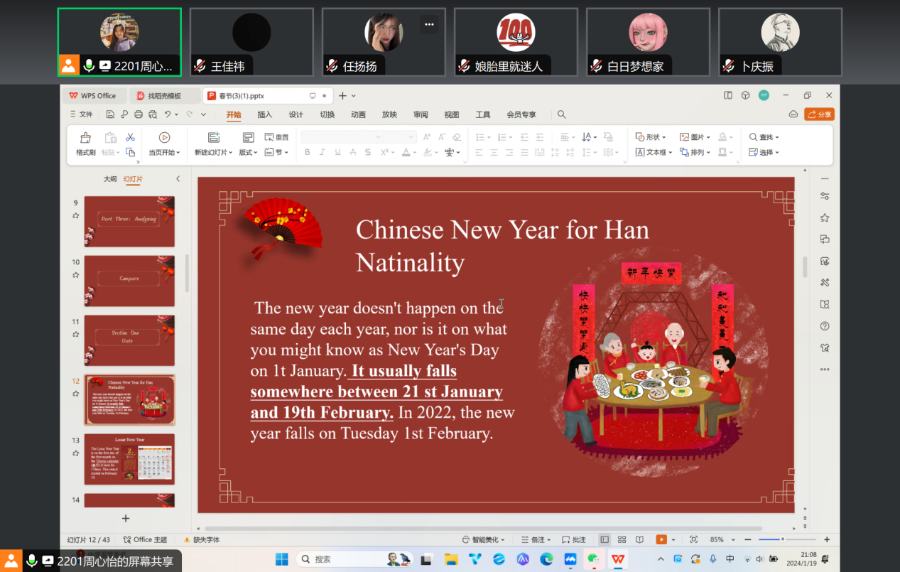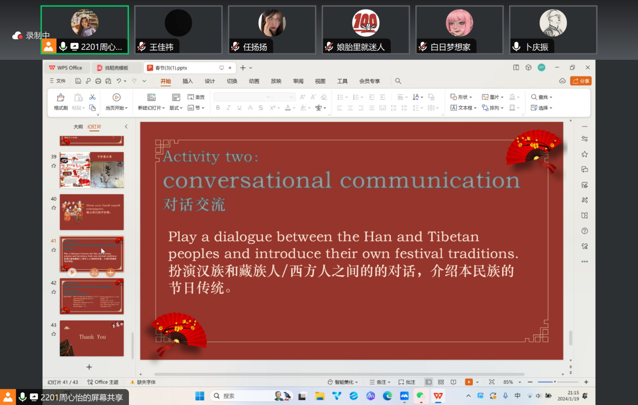 而后,1月17日,为了进一步提升寒假社会实践项目的质量,队员们与卜老师进行了深入的线上交流,进行了试课,并根据试课反馈积极修改和完善了课题内容。在授课内容的整改过程中,队员们集思广益,力求让课程内容更加贴合实践需求,更具教育意义。同时,讲授组精心准备了课程展示,以生动的方式呈现课题研究成果,而调研组则深入挖掘黄河边的红色故事,搜集珍贵的历史资料,为社会实践增添丰富的文化内涵。
