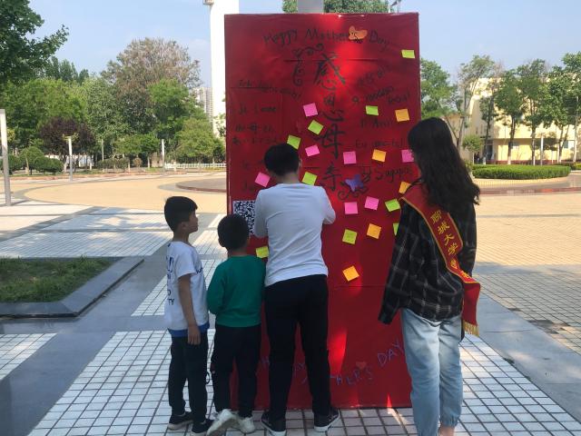 没有历史史诗的震撼人心,没有风卷大海的惊涛骇浪,母爱就像一首深情的歌,宛转悠扬,浅唱低吟。活动现场,独具特色的主题展板吸引了不少聊大学子驻足,他们将自己想对母亲说的话写到便利贴上。一张张便利贴看似普通,却包含着孩子对母亲最深沉的爱意。母爱是一泓清泉,让你的情感即使蒙上岁月的风尘依然纯洁明亮。伴随着歌曲《母亲》的缓缓播放,在场的许多同学都流下了动情的泪水。其中一位妈妈看到儿子在展板上的留言后非常感动。“亲爱的妈妈,母亲节快乐!”这简单的话语,对于母亲而言却是最好的礼物。在成员们与这位母亲聊起孩子时,她的脸上洋溢起幸福的笑容,她还叮嘱同学们记得打电话问候一下母亲表示感恩。最后,在场的同学通过扫描二维码,进一步了解母亲节的历史,深刻感受到母爱的伟大并懂得珍惜亲情。