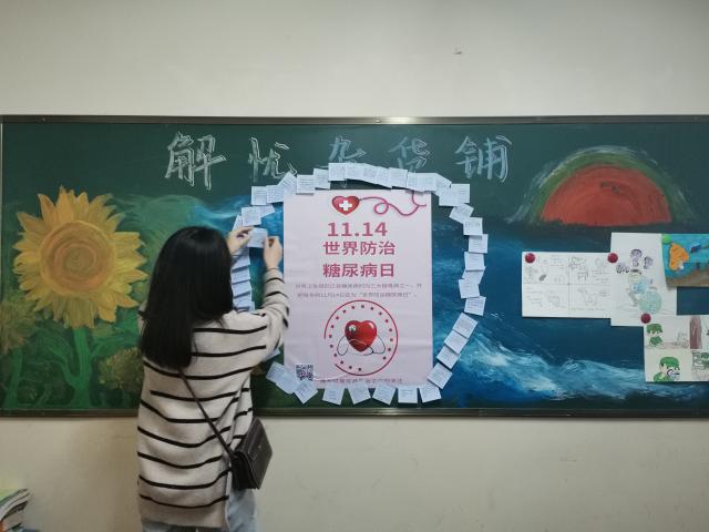 糖尿病被称为现代疾病中的第二杀手。目前,糖尿病发病率逐年上升,糖尿病发病呈现出扩大化和年轻化趋势。 2019年11月14日是第13个“联合国糖尿病日”,为配合联合国糖尿病日“蓝光行动”计划,提高同学们对预防糖尿病的重要认识、普及预防糖尿病知识、呼吁同学们采取积极健康的生活方式,11月14日,304am永利集团举办了“防控糖尿病,我们在行动”主题活动,倾诉与倾听工作室成员及304am永利集团60名同学参与此次活动。