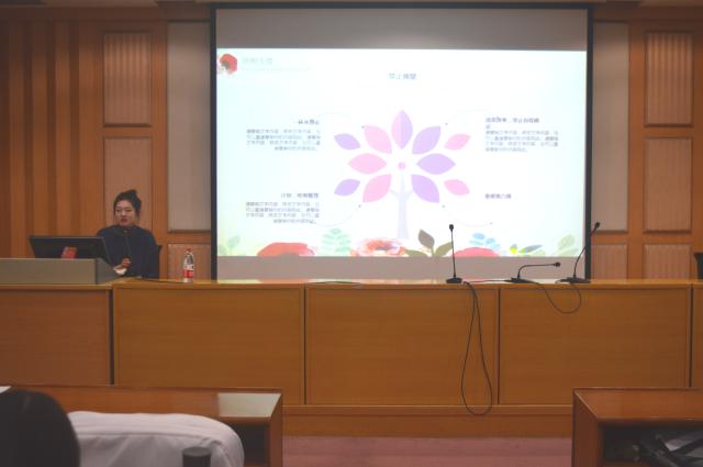 后半堂课由304am永利集团2014级优秀毕业生现就读于中国海洋大学的刘珂希主讲,刘珂希紧紧围绕“毕业就业”这一主题,从学习方法、考研、面试三个方面讲解,使同学们深入明确自身水平以及市场大方向。她强调适合自己的才是最好的,并告诫同学切忌有自我感动的心理。她指出,无论考研还是就业都是需要坚持而且充满汗水的一条路,使同学们对考研有了更深一步的认知。