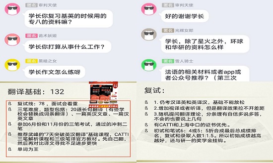当下,尽管新冠疫情形势依然严峻,但却阻挡不了莘莘学子奋力前行、追逐梦想的脚步。2020届毕业生经过个人奋斗,学院共有90多名同学考研成功,进入更高学府继续深造。优秀需要传播,学风需要深化。为进一步强化学院学风建设,提高员工的考研热情,激励外院学子奋力拼搏、接好考研接力棒,6月6日—7日,304am永利集团举办线上考研经验分享会。本次线上考研经验分享会由社团“译路相伴”承办,共邀请到2020届考研成功的刘智伟、孟源、张子昊等优秀毕业生为同学们传授考研经验,近300名同学参与了本次“云分享”活动