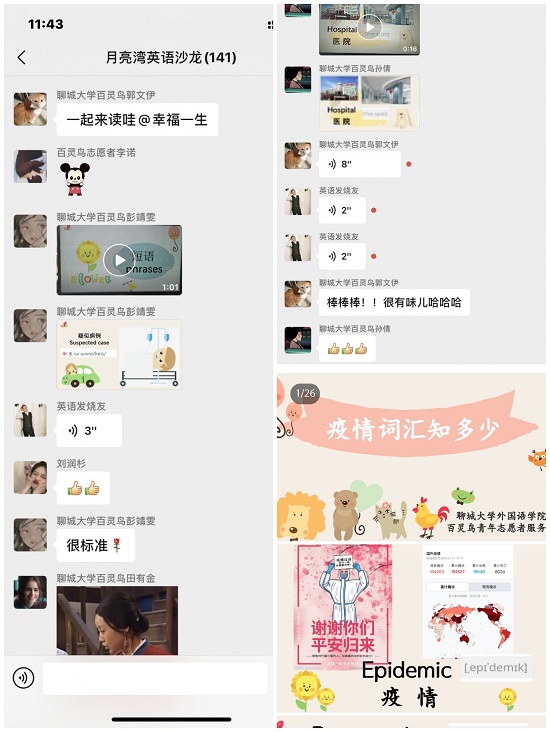 停课不停学,“疫”起学习。此次活动的开展,增进了员工对疫情相关英语词汇的了解,提高了员工外语学习的能力,同时,促进了服务队成员线上教学实践的能力,推动了同学们综合素质的提高和全面发展。(审核 魏京祥)
