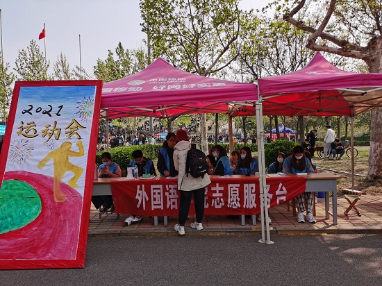 4月15日,第四十一届运动会在有序的配合中进行着。运动员们在绿茵场上一展英姿,为比赛筹措的宣传人员和志愿者们也在紧锣密鼓地进行运动会的幕后工作。