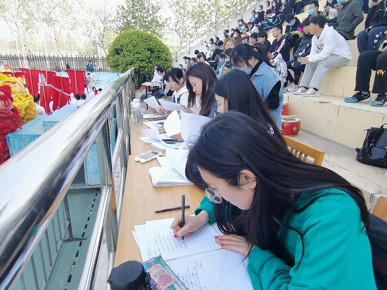 “春暖运动场,纸笔炫青春”。第四十一届运动会充溢青春的激情,精彩背后,默默奉献的宣传人员以笔为马,以字为桨,以加油稿和震天呐喊展现青春的活力。
