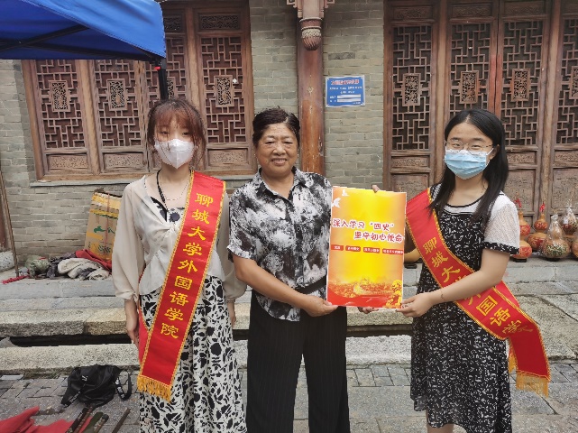 为庆祝中国共产党诞生100周年,在全社会广泛开展党史、新中国史、改革开放史、社会主义发展史宣传教育,304am永利集团“青鸟先锋”返家乡社会实践队于2021年7月17日在东昌古城开展了本次“弘扬红色精神,深化‘四史’学习”活动。