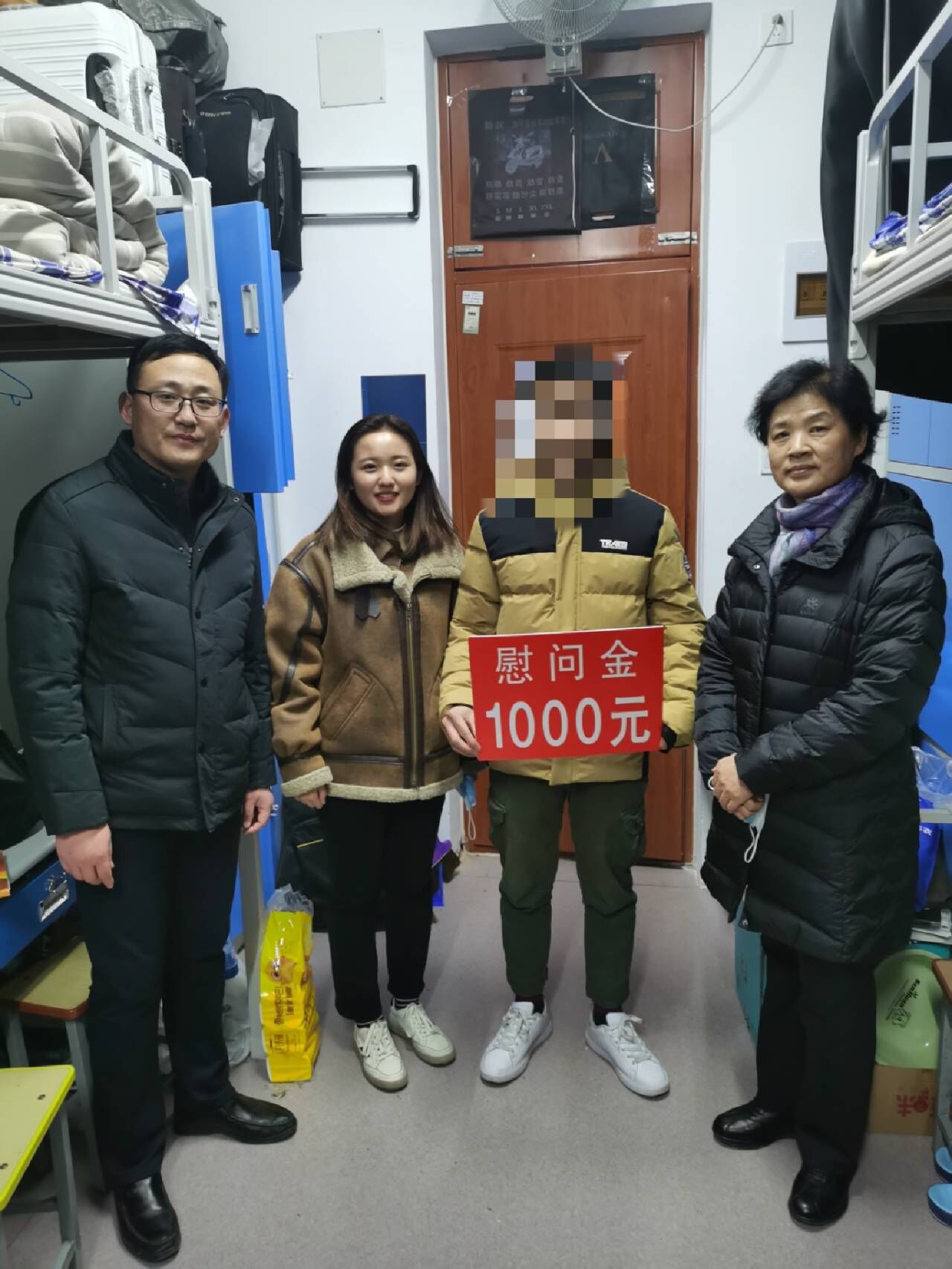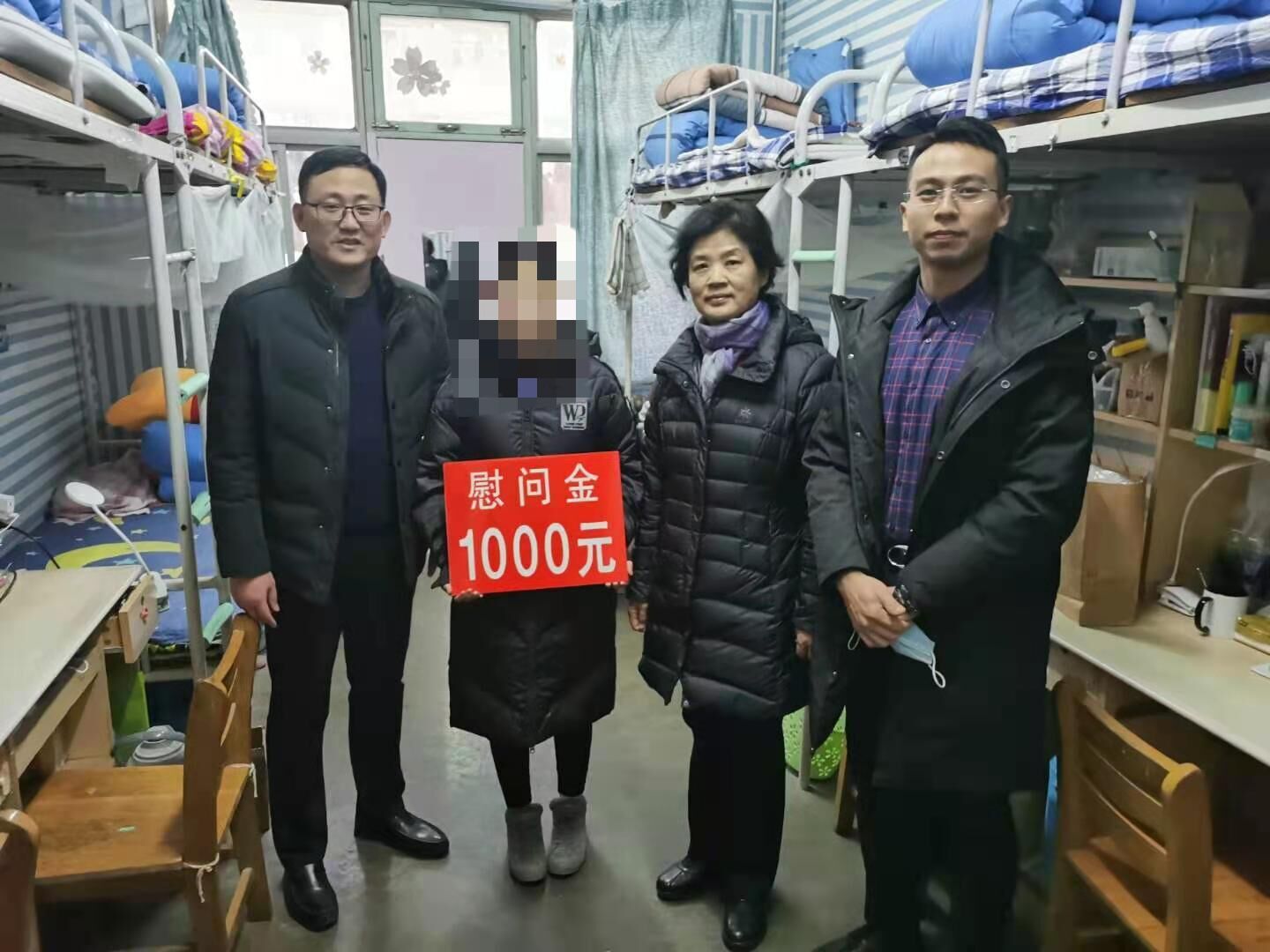 为深入贯彻国家资助政策,积极践行高校“立德树人”的教育理念,把党和国家对家庭经济困难员工的关怀落细落实,1月11日,公司党总支副书记高岩,团委书记魏京祥,辅导员岳圆、吴锐、王凯,宿舍走访慰问家庭经济困难员工。