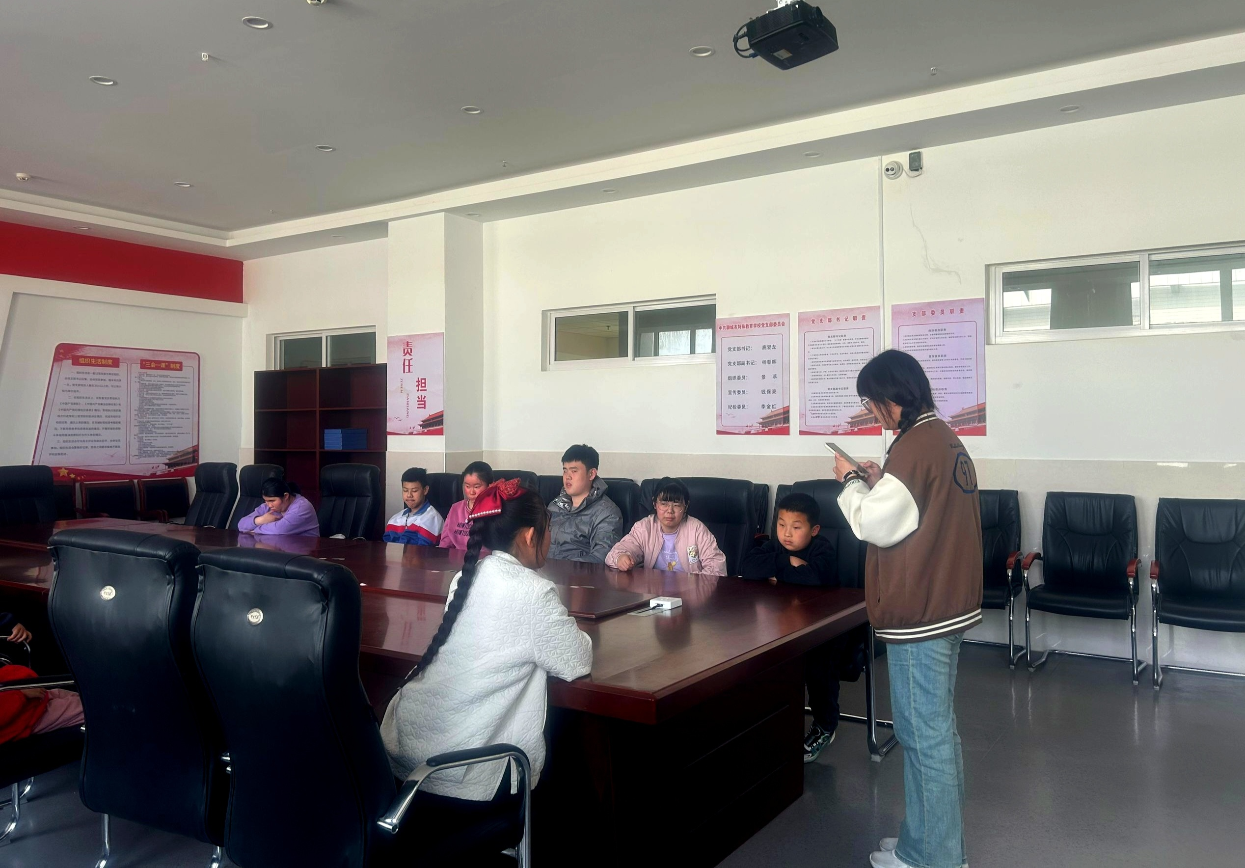 活动前期,志愿者们分好队伍,制作好了相应的PPT,以使活动顺利进行。在活动期间,对于听障儿童,志愿者们首先带领他们观看了《航拍中国》中关于山东的部分内容,并在对特别地方进行了简要介绍,使听障儿童更加真切的感受和了解山东的秀丽景色。接下来是游戏环节,志愿者们播放视频来介绍狼人杀游戏的玩法,并引导他们进行简单的游戏互动,增强了他们的自信心和社交能力。对于视障儿9童,志愿者们主要利用朗读的方式,对他们讲述中国传统文化故事,在对历史人物的解读中引导他们树立正确的价值观,增强自信。然后是娱乐环节,志愿者们和儿童们玩耍交流,一起唱歌跳舞,感情也变得更加深厚。最后,志愿者们用江梦南的例子,鼓励这些儿童去热爱生活,努力追求理想,感受更广阔的世界。随着动人的歌曲——送你一朵小红花,活动进入了尾声,孩子们度过了愉快的下午。