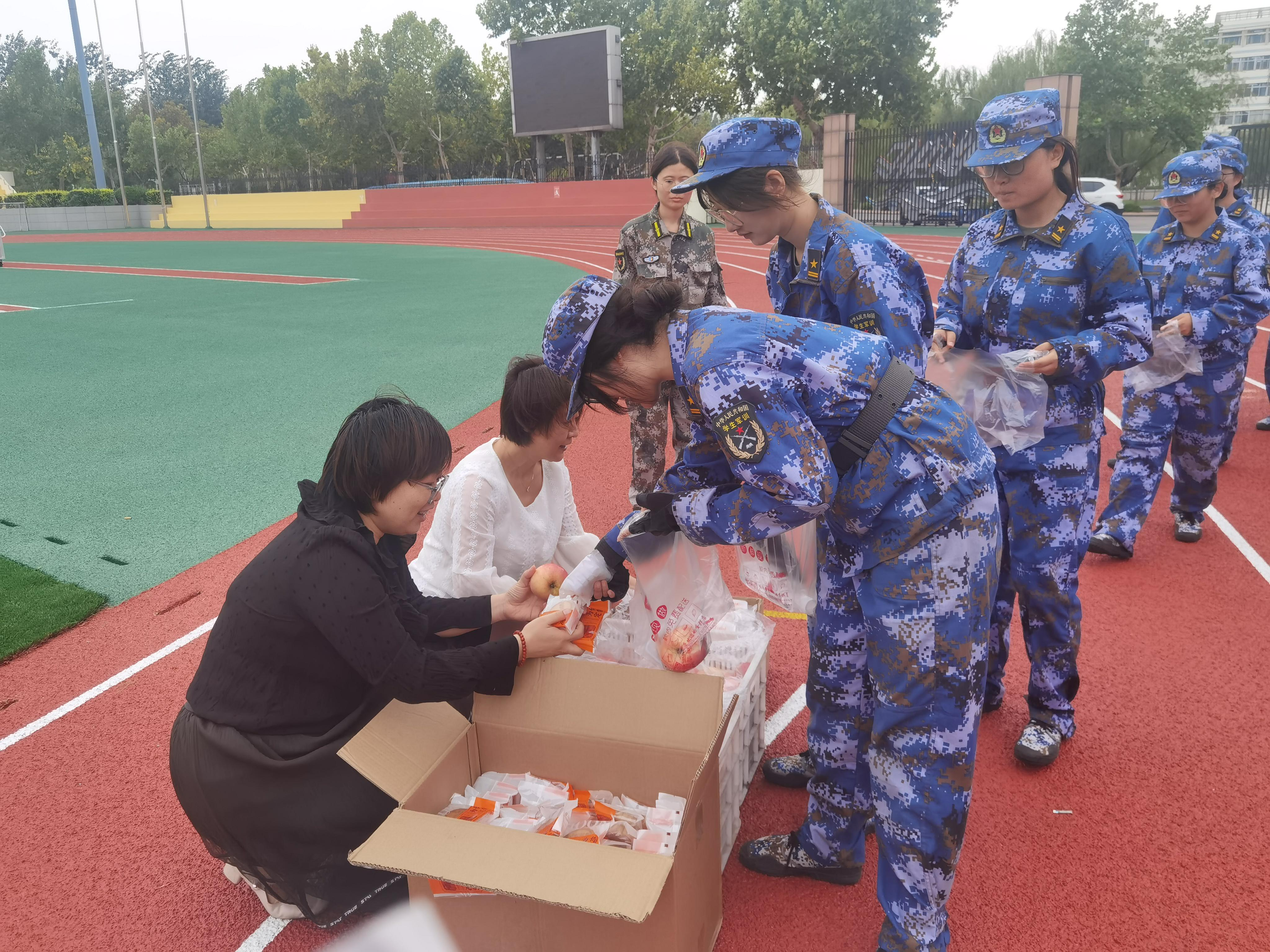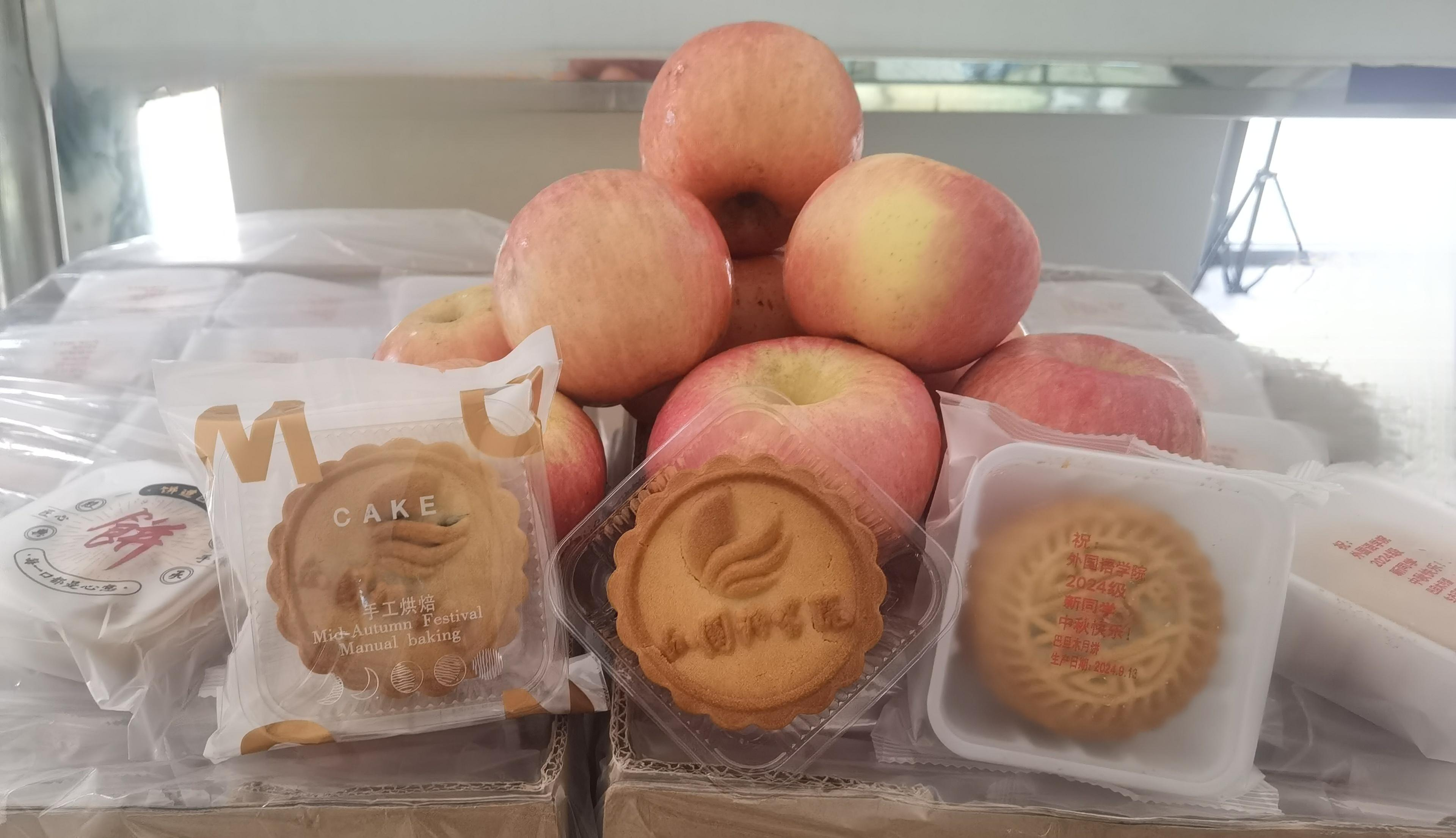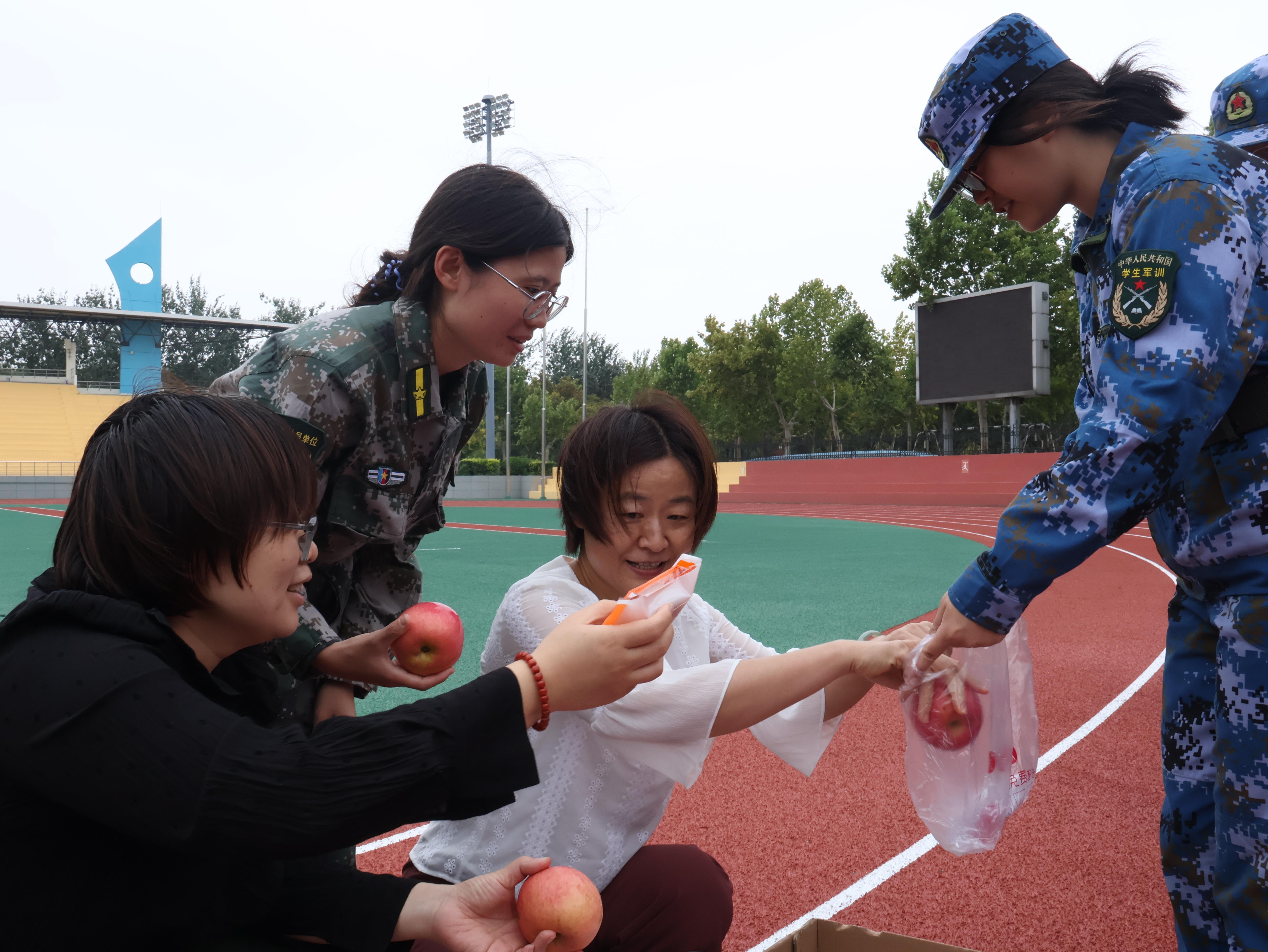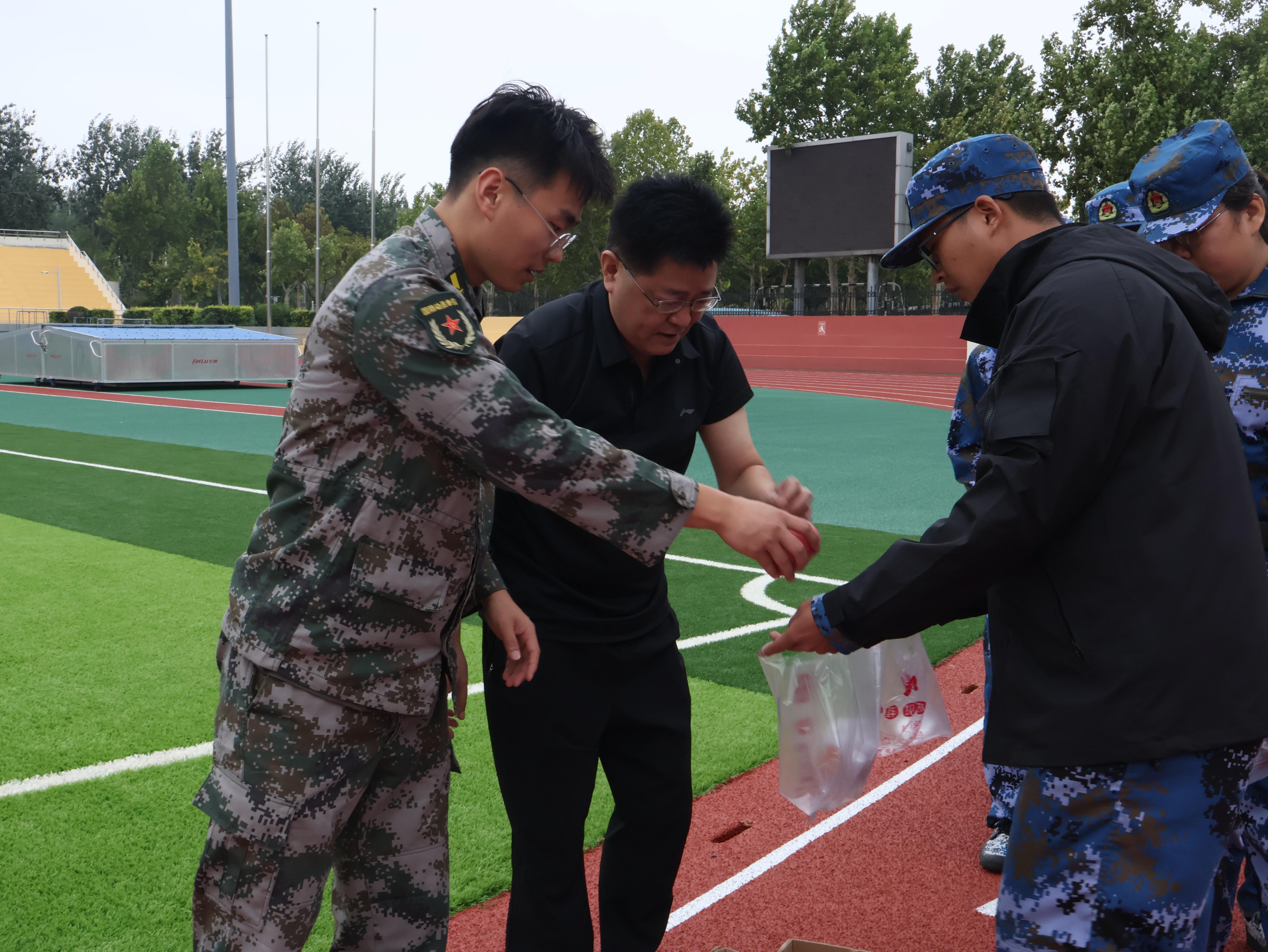 接着,各位领导教师向新生同学以及军训教官分发中秋节礼品,其中包括学院特别定制的月饼和红润的苹果,传递了节日的温馨与祝福。新生们双手接过礼物,脸上流露出幸福的笑容。这一温馨的举措不仅让学子们感受到了学院的关爱,也让新生在紧张的军训生活中体验到了节日的甜蜜与幸福。在活动的最后,全体新生手持月饼和苹果,满怀感激地向领导老师们齐声致谢,并祝愿老师们中秋节快乐。这一幕充满了温馨与感动,深刻体现了师生之间浓厚的情谊。