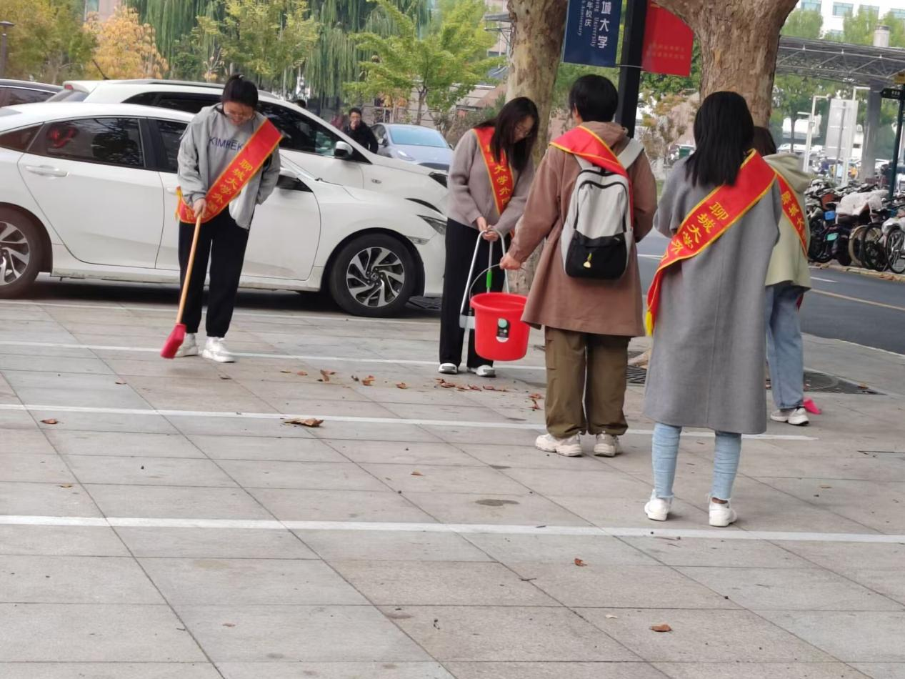 活动一经发起,便得到了志愿者们的热烈响应。他们以高昂的热情投入到此次活动中,展现出了当代老员工的责任与担当。在活动过程中,大家分工明确,配合默契,有的拿着扫帚认真清扫落叶,有的推着垃圾桶及时收集清理好的落叶,展现出了极高的团队合作精神和强烈的劳动热情。尽管天气微凉,但志愿者们的热情却丝毫未减,通过亲身参与清扫落叶、收集落叶等行动,志愿者深切地体会到了保护环境、维护校园整洁的重大意义。