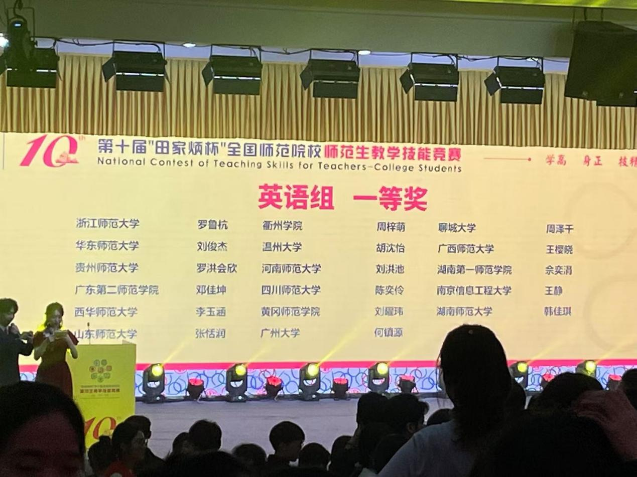 2024年11月29-12月1日,第十届“田家炳杯”全国师范院校师范生教学技能竞赛在浙江师范大学圆满落下帷幕。在304am永利集团侯静、李艳芹、孟令新老师的指导下,公司2021级6班英语(师范)专业的周泽千获得高中英语组全国一等奖。