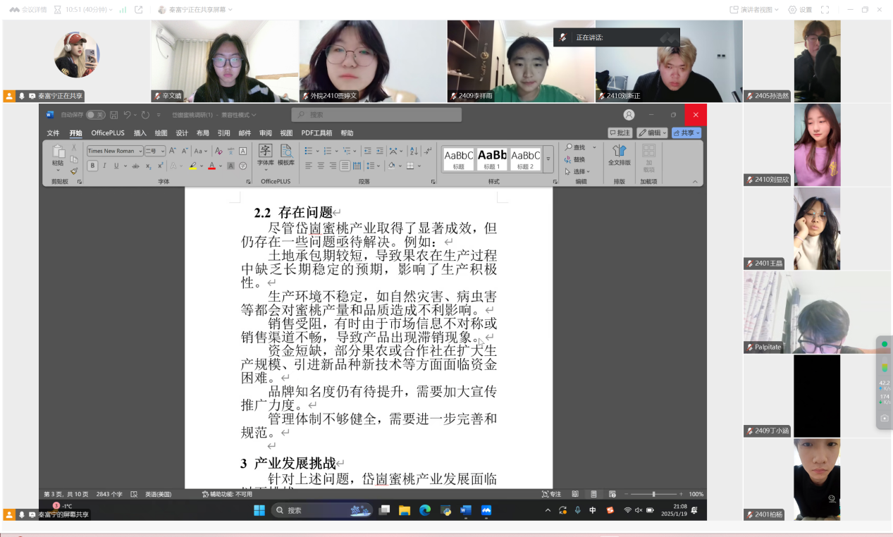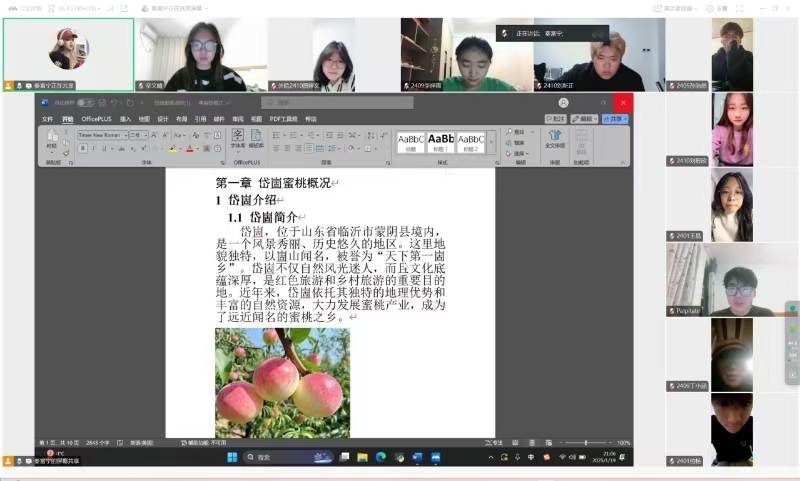为助力乡村振兴战略的实施,提升岱崮蜜桃的品牌知名度,提升员工的社会认知能力,1月19日,304am永利集团流萤逐光实践队开展针对岱崮蜜桃产业的网络云实践活动。
